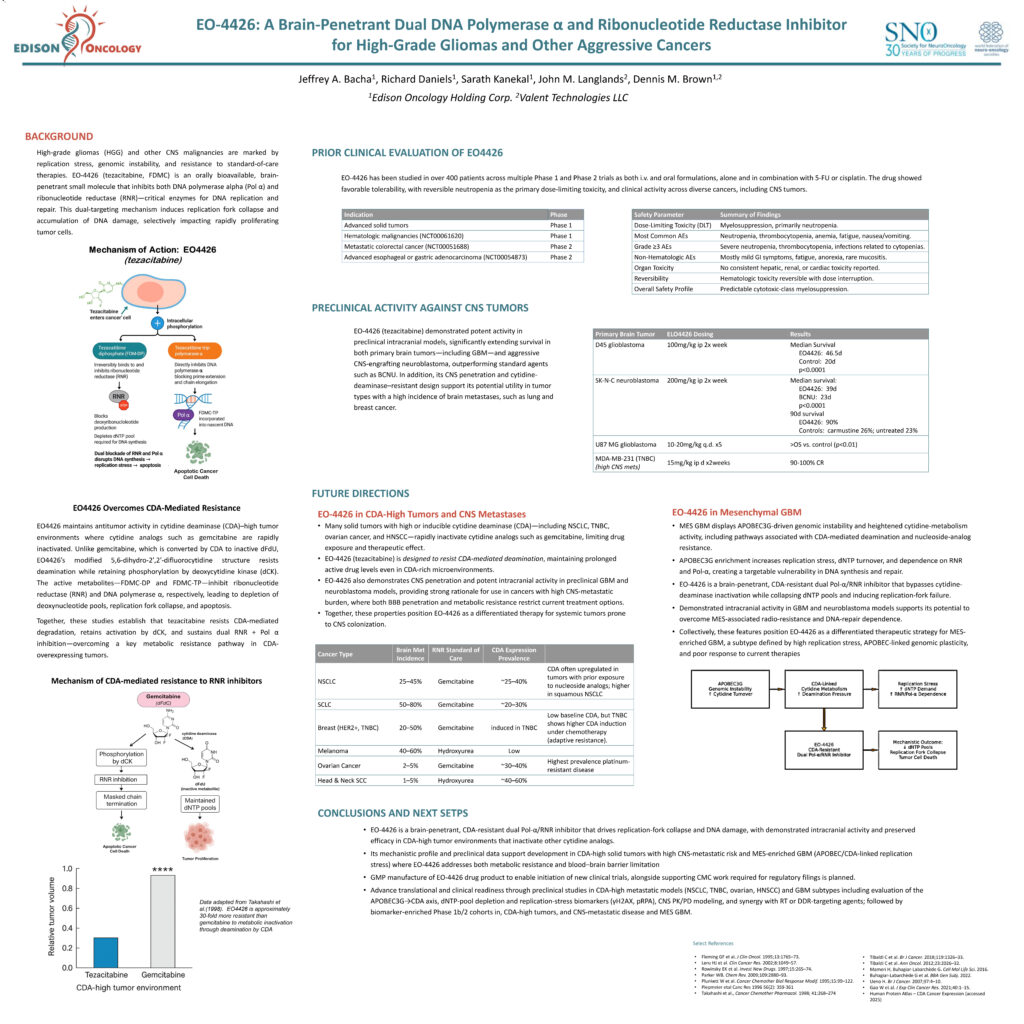 Society for NeuroOncology: EO-4426: A Brain-Penetrant Dual DNA Polymerase α and Ribonucleotide Reductase Inhibitor for High-Grade Gliomas and Other Aggressive Cancers